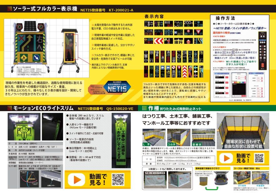 「ソーラー式フルカラー表示機」「モーションECOライトスリム」「作柵」