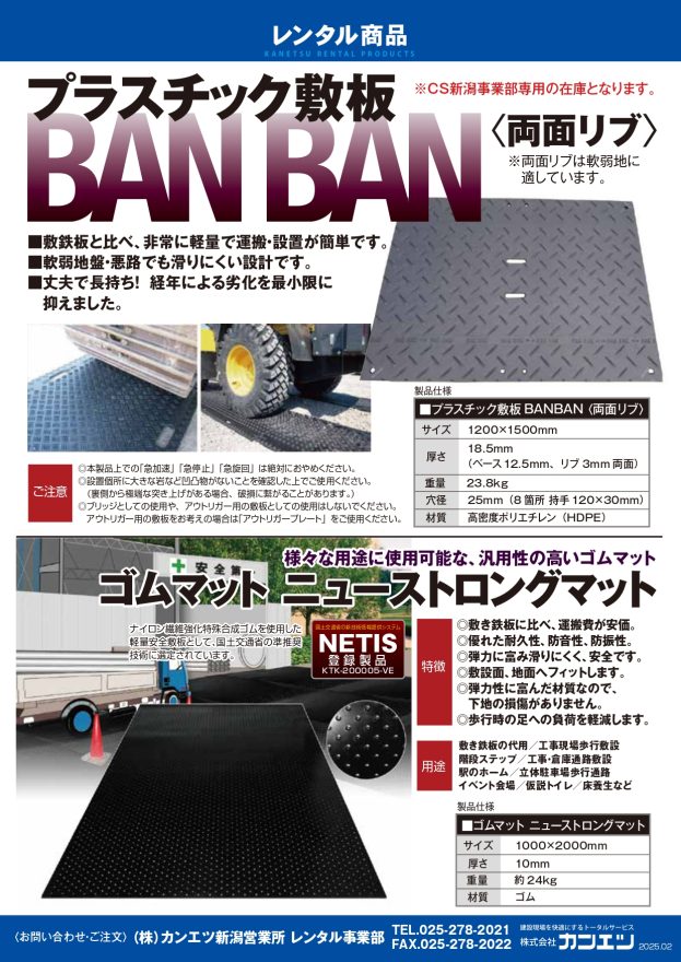 ※プラスチック敷板「BAN BAN」は、CS新潟営業所専用在庫となります。