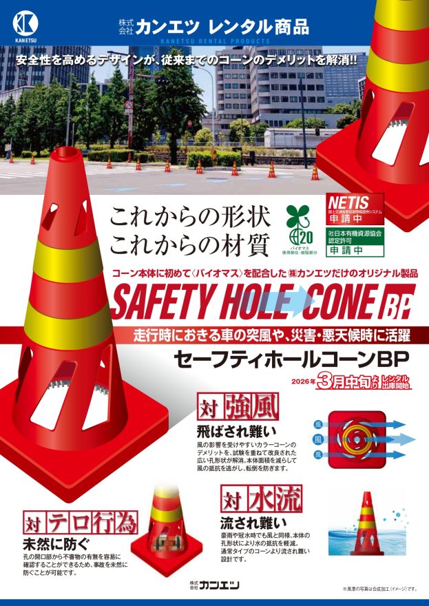 3月中旬よりレンタル開始「セーフティホールコーンBP」